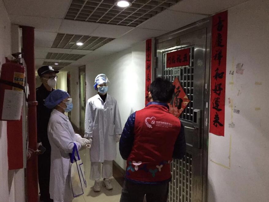 圖為林劍平同志配合區衛健委到南塘B督察納管人員居家隔離情況