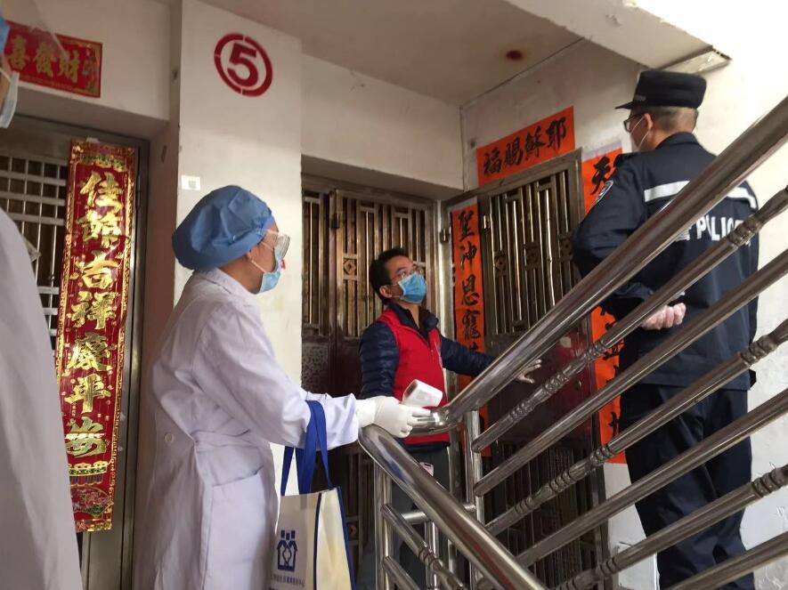 「三位一體」上門為納管人員測量體溫