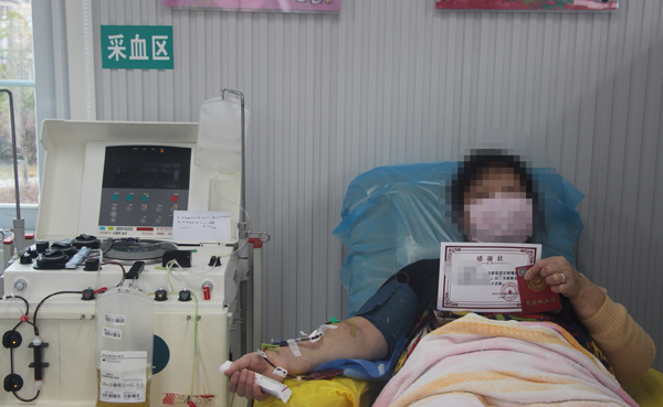 該新冠肺炎治癒患者來到市中心血站,在血站醫務人員的指導下填寫了《無償獻血登記表》並進行健康徵詢、體檢和血液初篩。初篩合格後成功捐獻AB型血漿400毫升,成為韶關第一位捐獻血漿的康復者。
