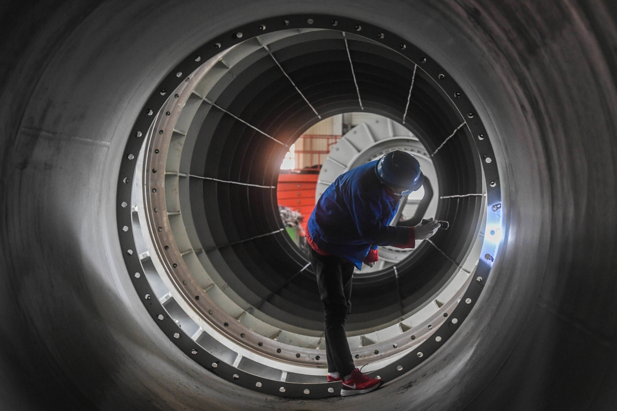 全國各地企業陸續復工復產。圖為昨日杭州一公司內,工人在對成品主軸進行質檢。目前該企業大部分員工都已到崗。新華社