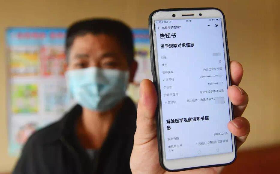 【香港商報訊】記者 徐紅記者從陽江相關部門獲悉,2月16日,在陽江市政府服務數據管理局、陽江市衞生健康局及陽東區疾控中心人員見證下,來自湖北的吳先生通過「粵省事」陽江專版平臺獲取了廣東省首張解除醫學觀察電子告知書。「有了解除醫學觀察電子告知書,無論返崗工作、小孩上學還是接受檢查都方便多了,不用把紙質版告知書帶在身邊,總是擔心丟失。」 吳先生高興地表示。這是廣東省陽江市「數字政府」改革建設的又一重大成果,利用信息化手段服務被隔離醫學觀察對象,為企業生產經營解決人員流動問題,加強疫情防控,促進企業復工復產。