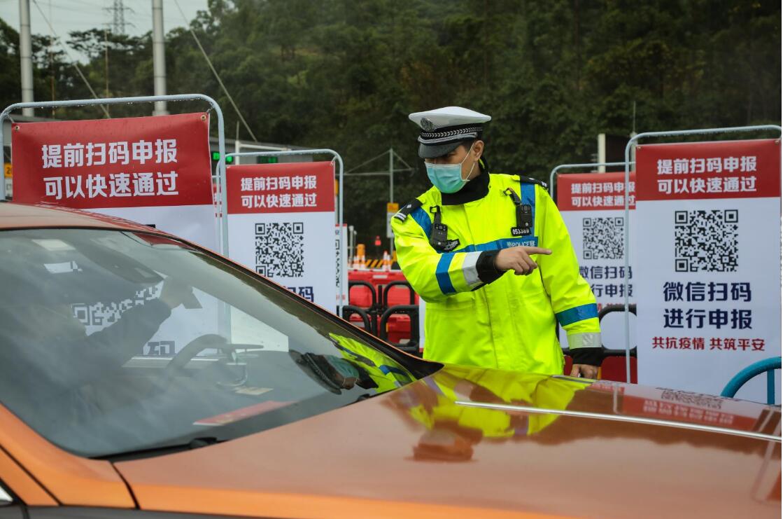 交警表示,對符合條件的所有車輛,在經過檢疫點時提前打開車窗,準備好認證綠碼,經現場檢驗人員查驗綠碼並確認只有駕駛員無乘客後,無需測量體溫,車輛可快速通過。