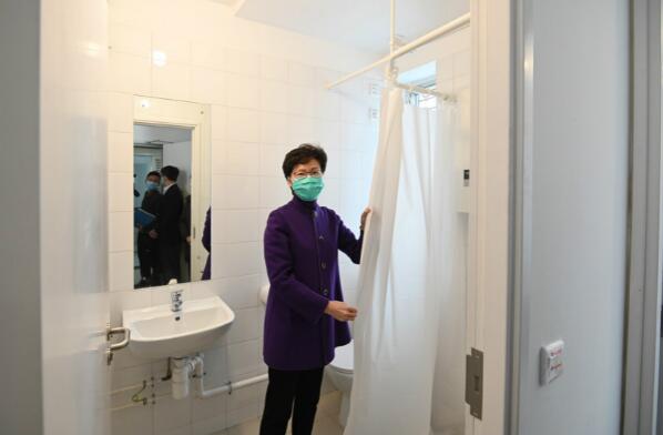 林鄭視察即將用作檢疫中心的火炭駿洋邨。圖:新聞處