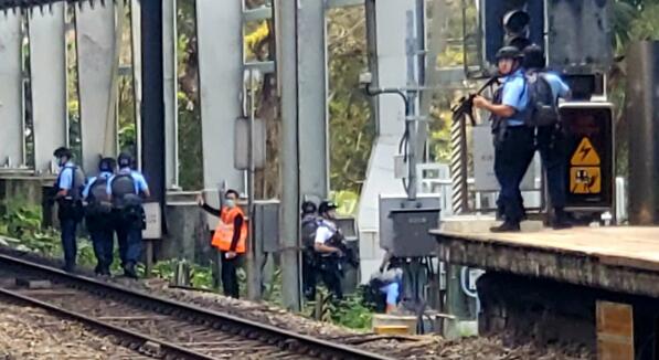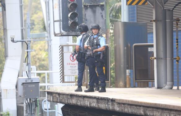 警員持槍在月台戒備。圖:星島