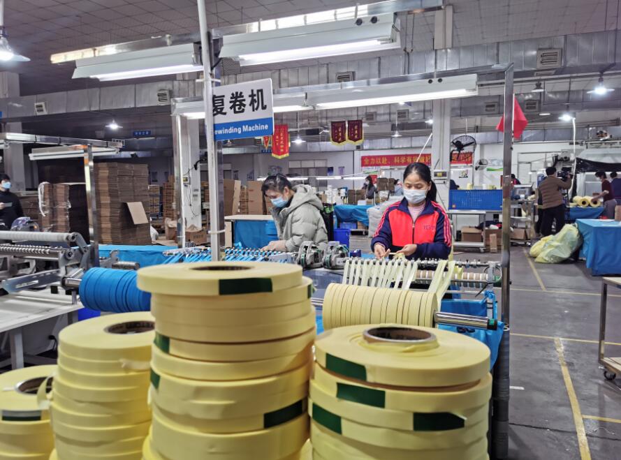 圖為廣東盈通新材料有限公司員工正在緊張有序生產
