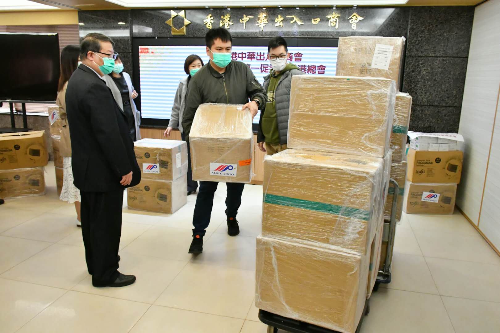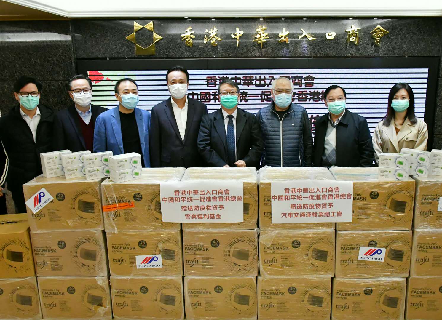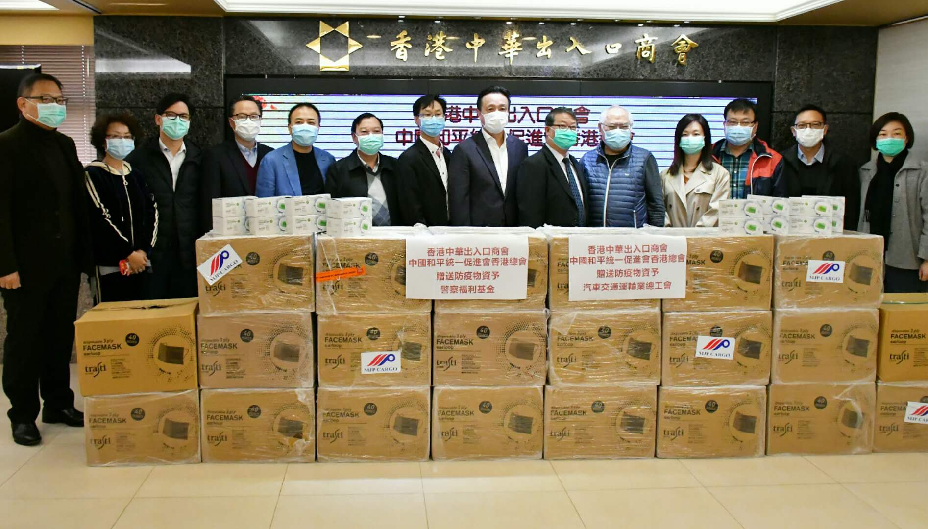 【香港商报网讯】記者馮煒強報道:香港中華出入口商會及中國和平統一促進會香港總會分別向警察福利基金及工聯會汽車交通運輸業總工會送出3萬及2萬個口罩。