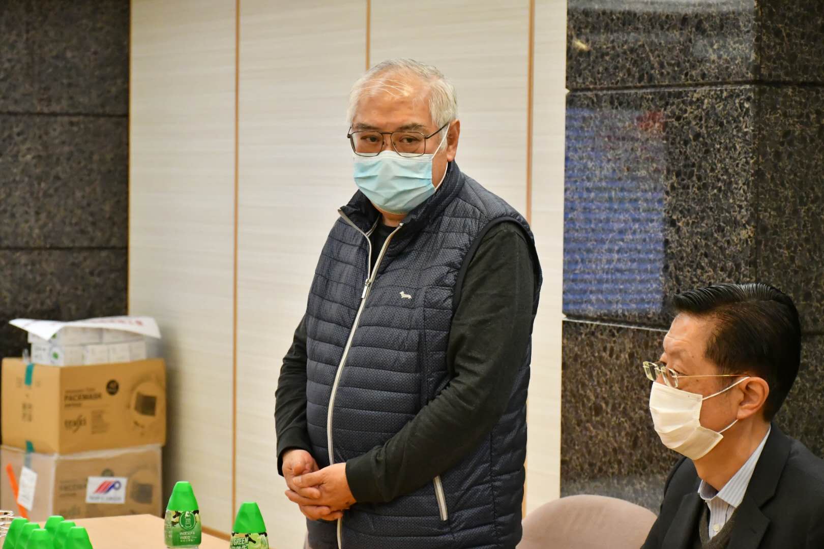儀式後工作人員馬上把口罩送出。