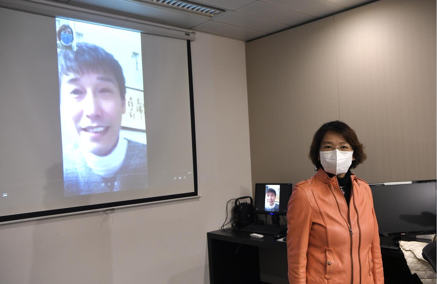 梁美芬在記者會上播放求助港人的片段。 中通社