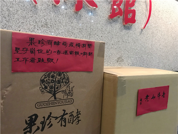 【香港商報訊】記者黃鳳鳴報道:2月22日下午,果珍有酵集團派愛心代表來到香港商報(深館),捐贈自有品牌的保健物資,對一線新聞工作者進行慰問。