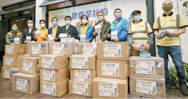 另外,香港建造業關愛中心昨獲俊和建築公司捐贈2.5萬個口罩,並分發口罩給香港建造業傷亡工友家屬、肺塵埃沉病病人組織及香港社區組織協會。