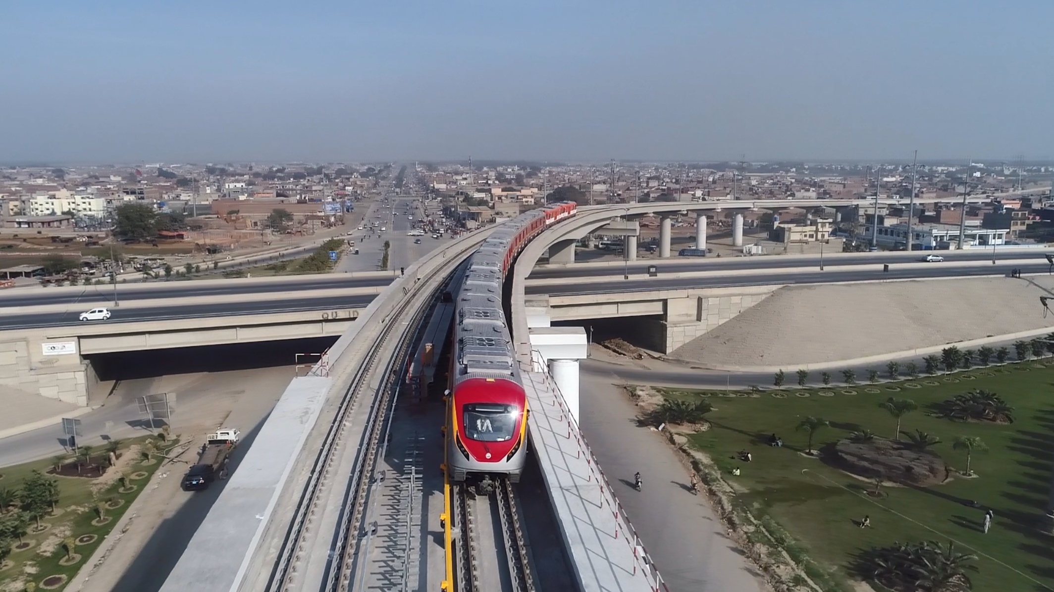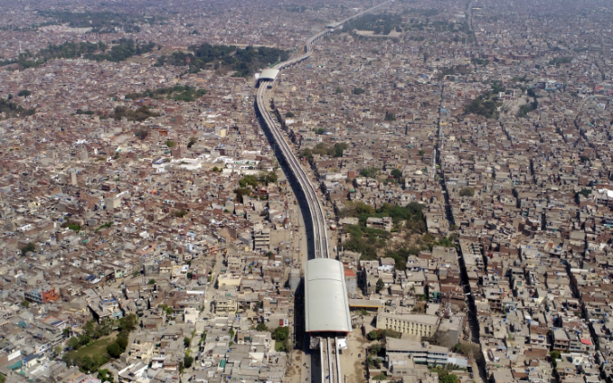 拉合爾軌道交通橙線是巴基斯坦首條地鐵,也是「一帶一路」倡議框架下中巴經濟走廊第一個軌道交通項目,全線採用中國標準、中國技術、中國裝備。線路全長25.58公里,線路大致為南北走向,以高架為主,共26個車站(高架24座,地下2座),共設車輛段和停車場各1座,主變電所2座,車輛配置為5輛編組B1型車27列,直流750伏第三軌供電,最高運行速度80公里/小時。