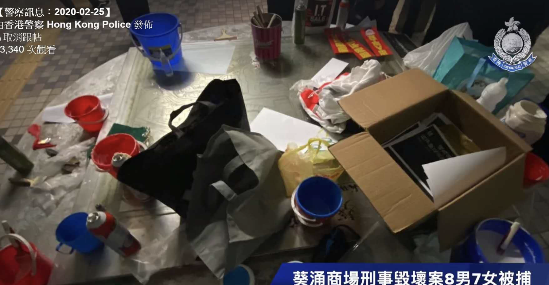 警方透過facebook「香港警察 Hong Kong Police」專頁,發放3宗涉及年輕人的被捕資訊,其中1宗更涉及有老師和學生同時被捕。在帖文中,負責主持的鄒昊亨督察表示,過去數日有多宗涉及年輕人的案件,令人非常擔心。前日(24日)晚上7時許,警方接獲市民報案指,有人在葵涌商場外非法張貼海報。多名警員到場進行調查,其後拘捕8男7女,年齡介乎14至29歲,涉嫌刑事毀壞。被捕人當中包括1名老師,警員在現場檢獲11支膠水及多張海報。