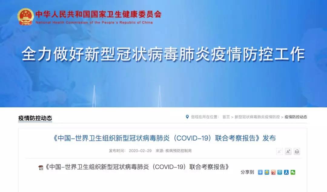 【香港商報網訊】29日,国家卫健委发布《中国-世界卫生组织新型冠状病毒肺炎(COVID-19)联合考察报告》,公布了对新冠肺炎的最新研究结果与应对措施。报告指出,中国采取了历史上最勇敢、最灵活、最积极的防控措施。