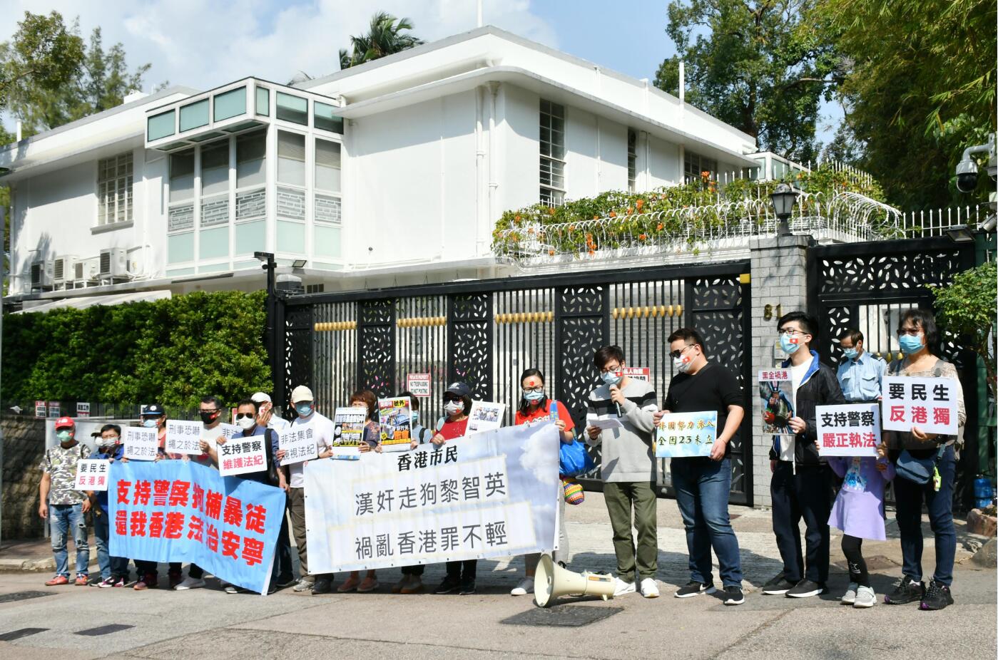 約20個市民昨午聚集於壹傳媒主席黎智英嘉道理道住宅門前請願,他們手持寫有「漢奸走狗黎智英,禍亂香港罪不輕」的橫額,又高舉「要民生,反『港獨』」、「刑事恐嚇,繩之於法」等口號,並展示有關黎智英的負面新聞;於示威開始前,黎智英大宅大閘更突然開啟,見到民主黨李永達與楊森乘坐私家車離去,不過車上未見黎智英的身影。