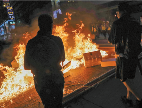 示威者掟汽油彈堵路縱火