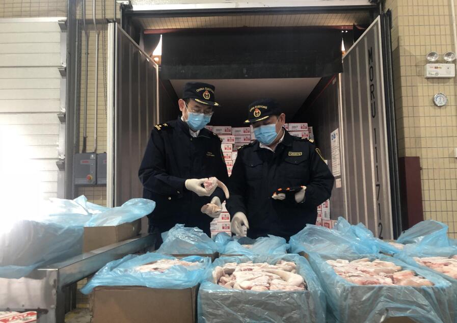 2月22日,一批共3貨櫃的凍雞產品由SEROJA貨輪運抵廣州南沙港,由於客戶所在地區快遞管制,企業無法提供衛生證書的正本。廣州海關所屬南沙海關“特事特辦”,在電子資訊無誤及企業提供電子保函的前提下,以證書掃描件作為預審和申報憑證,當天驗放該批貨物。