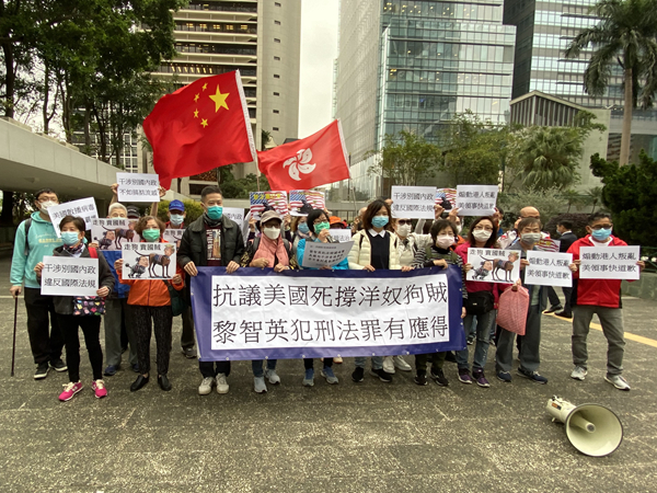 有參與集會的市民表示,香港去年自發生修例風波以來,社會撕裂、民生艱難、秩序被擾亂,希望市民認清製造混亂的「幕後黑手」,及黎智英等人背後一直有人「撐腰」的事實。此次黎智英被拘捕及被落案起訴,香港的執法及司法部門有證有據,才作出有關決定。香港是中華人民共和國的特區,國家的內部事務不容外人指手畫腳。