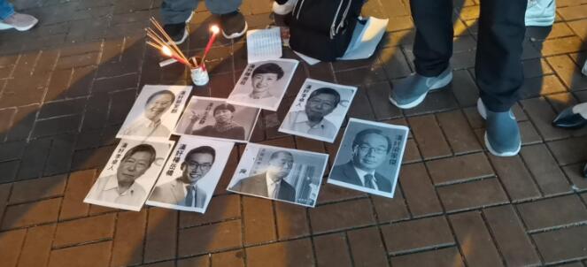 集會市民將黎智英等7人的照片放在地上用鞋打再焚燒(受訪者供圖)