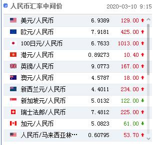 3月10日,人民币兑美元中间价调贬129个基点,报6.9389,结束7连升。前一交易日人民币兑美元中间价报6.9260,16:30收盘价报6.9499,23:30夜盘收报6.9480。