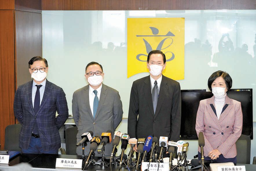 左起:張國鈞、廖長江、陳智思及葉劉淑儀匯報出席美國香港對話交流會。記者馮俊文攝