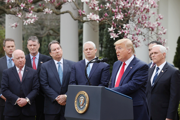 本港時間14日凌晨3時半,特朗普在白宮召開記者會宣布美國進入「國家緊急狀態」。路透社