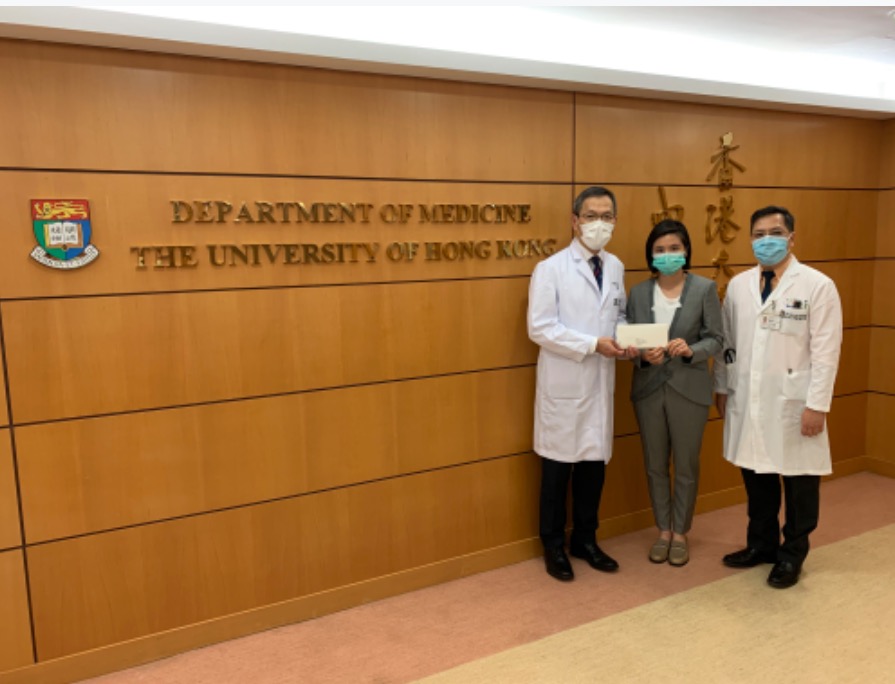 港大醫學院內科學系系主任劉澤星教授、副系主任林志良副教授今日代表接收了林博士女兒林顥伊博士送上的支票。