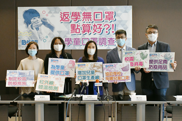 民建聯於3月4至11日期間,以網上問卷調查方式訪問了567名12歲以下的學童家長,結果發現有逾四成人表示,現時只有10至50個學童口罩存貨,三成人稱少於10個口罩存貨,亦有逾一成人表示無口罩存貨。同時,有逾九成人表示擔心子女復課後沒有足夠口罩。
