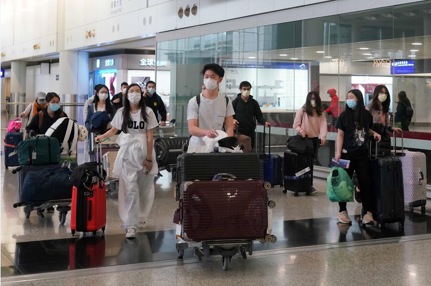 本港強制所有入境人士必須隔離檢疫令今日凌晨生效前夕,大批留學生昨日乘搭航班湧港。 中通社