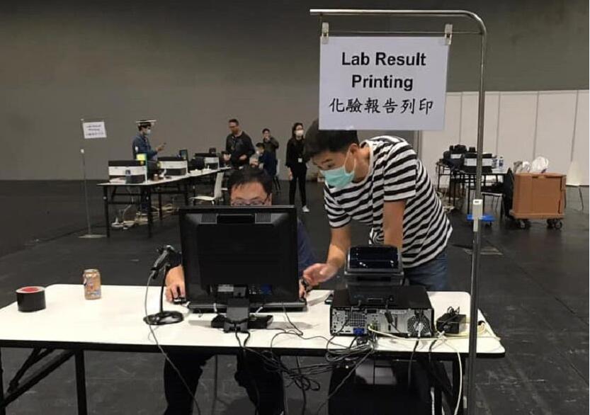 亞博館臨時檢測中心內設有化驗報告列印站。