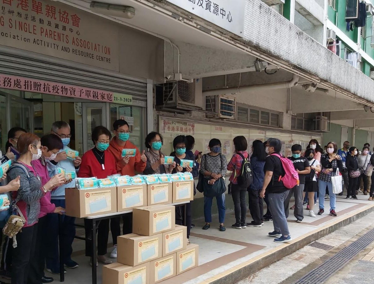 香港單親協會總幹事余秀珠稱,單親家庭的口罩消耗量特別大,母親若要外出,不可能將兩個未成年子女留在家中,如果一起出門,更會用掉3個口罩,對單親家庭負擔很重,她對工聯會贈送口罩表示感謝。