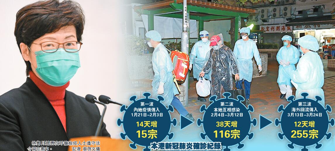 【香港商報网訊】記者周偉立報道:新冠肺炎疫情肆虐歐美,大批港人從外地返港避疫,惟有部分人拒絕遵守檢疫令,令本港社區爆發風險大增。香港大學感染及傳染病中心總監何良表示,3月迄今已有18萬港人從海外回港,很多人來自疫情高危地區,可能成為社區「隱形播毒者」,有必要呼籲他們嚴格執行檢疫令,進行自我「社交戒嚴」。對於有接受強制檢疫人士擅離居所或酒店,行政長官林鄭月娥感到非常失望及痛心,她再次呼籲這些人應為社會負起責任,強調政府會盡力加強檢控和巡查,並設立熱線接受市民舉報。
