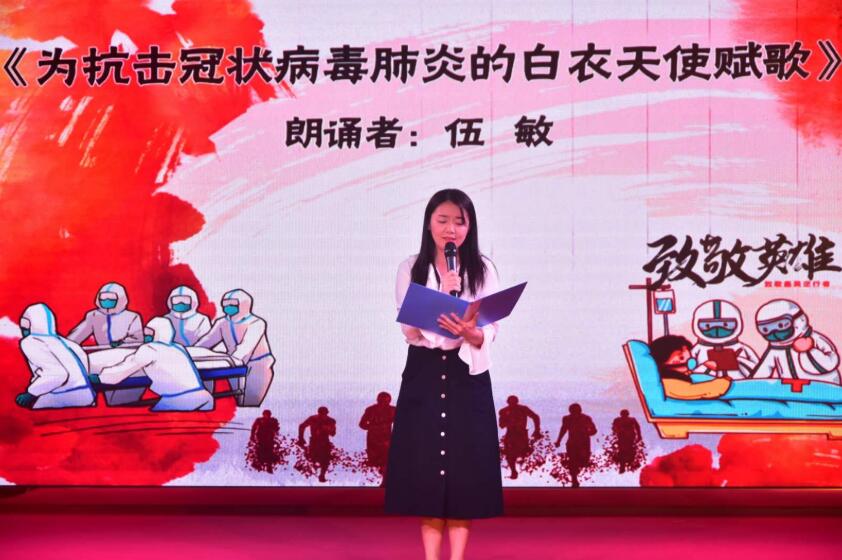 朗誦會在老乾歌舞協會深情朗誦的《最可愛的人》中拉開帷幕,《我久久佇立在烈士墓前》《勇敢的逆行者》《為抗擊冠狀病毒的白衣天使賦歌》《憶清明》《因為有你》《緬懷先烈,共擎旗幟》《「吹哨人」永生――悼念抗疫英雄李文亮》《如你所願》等一首首表達對革命先輩緬懷之情和對抗疫英雄們崇高敬意的詩文,在表演者們聲情並茂的朗誦下展現出來。將緬懷先烈與致敬抗疫英雄主題結合在一起,充分展示了在2020年這場沒有硝煙的戰場上,中國人身上那種奮勇擔當、不畏艱難、愛國愛人民的「紅色」精神的延續與傳承,小小的詩文朗誦傳遞著巨大的精神能量。
