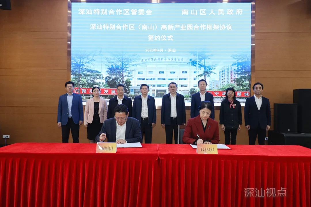 產耀東說,當前,深汕合作區正堅決按照市委書記王偉中的部署要求,搶抓「雙區驅動」重大歷史機遇、繼續保持全區良好發展勢頭、紮實推進全區2020年「全面履職提升年」各項工作,全面加快高質量發展步伐。與此同時,深汕合作區正按照省委全會「創新完善深汕特別合作區管理體制機制,以此為戰略支點,推動優勢產業向沿海經濟帶東翼延伸」要求,加快建立以先進制造業、戰略性新興產業和未來產業為主導的現代產業體系。深汕的產業布局、發展定位與南山的產業資源、發展需求高度契合,優勢互補。作為區域協調發展的新生事物,深汕合作區正以「規劃引領、基礎先行、平台帶動、產城融合」為發展思路,努力站在深圳經濟特區巨人的肩膀上建設發展。此次兩區再次簽約,標誌着雙方在戰略合作的道路上又邁出了穩健而堅實的一步,也期待南山區將更多的優質企業和項目落戶深汕合作區,支持幫助深汕合作區加快高質量發展,共贏前行。