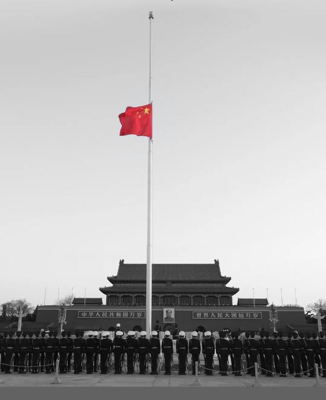 【香港商报网讯】今早,天安门广场国旗升起后举行下半旗仪式,向新冠肺炎疫情牺牲烈士和逝世同胞深切哀悼。