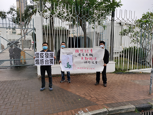 有團體今午(5日)到港台請願,直斥涉事記者是假借抗疫之名煽惑「台獨」,嚴重違反記者的專業操守,要求梁家榮嚴肅處理,並解僱涉事記者。