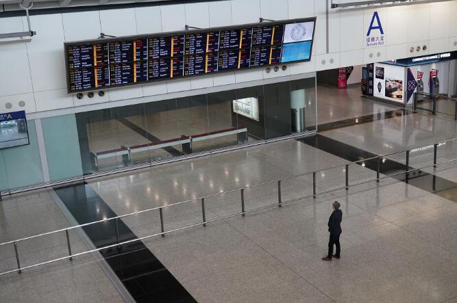 港府3月25日起禁止從海外乘飛機抵港的非香港居民入境,機場停止一切轉機服務,香港機場接機大堂客流稀少。中新社