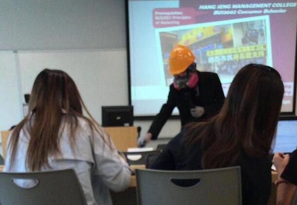 去年修例风波期间,香港恒生大學教師穿暴徒裝上課。(資料圖)