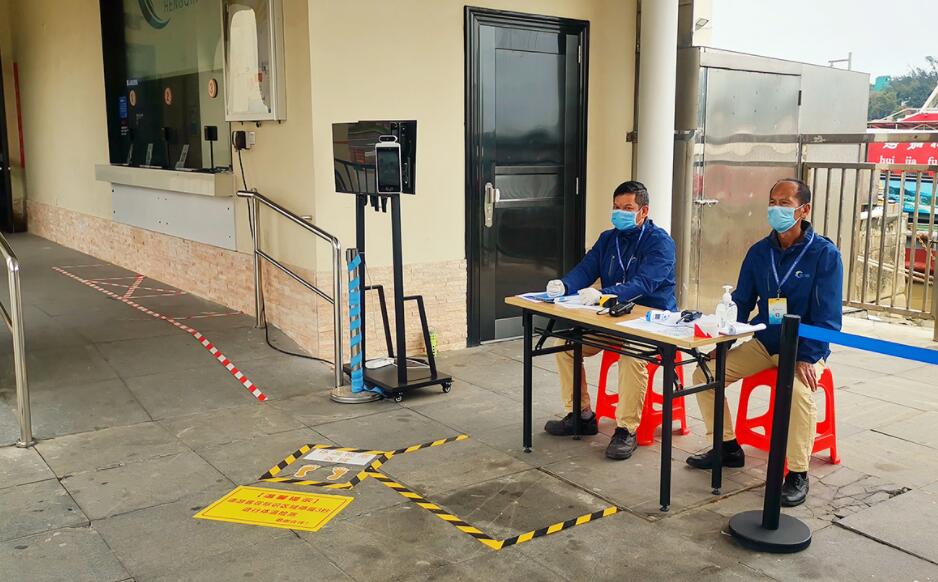 碼頭為乘客進行體溫等檢測工作