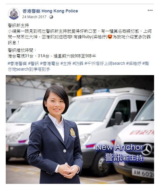梁皓妤2017年成為《警訊》主持之一。香港警察fb