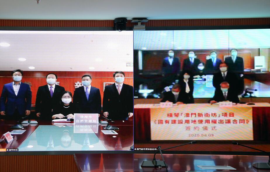 據了解,橫琴「澳門新街坊」項目用地於今年3月20日進行了為期15天的協議出讓公示,4月3日公示期滿。澳門與橫琴雙方按相關規定,在協議出讓項目用地公示期滿後簽署《國有建設用地使用權出讓合同》。根據目前防控形勢及具體措施安排,本次簽約創新採用視頻會議形式進行。