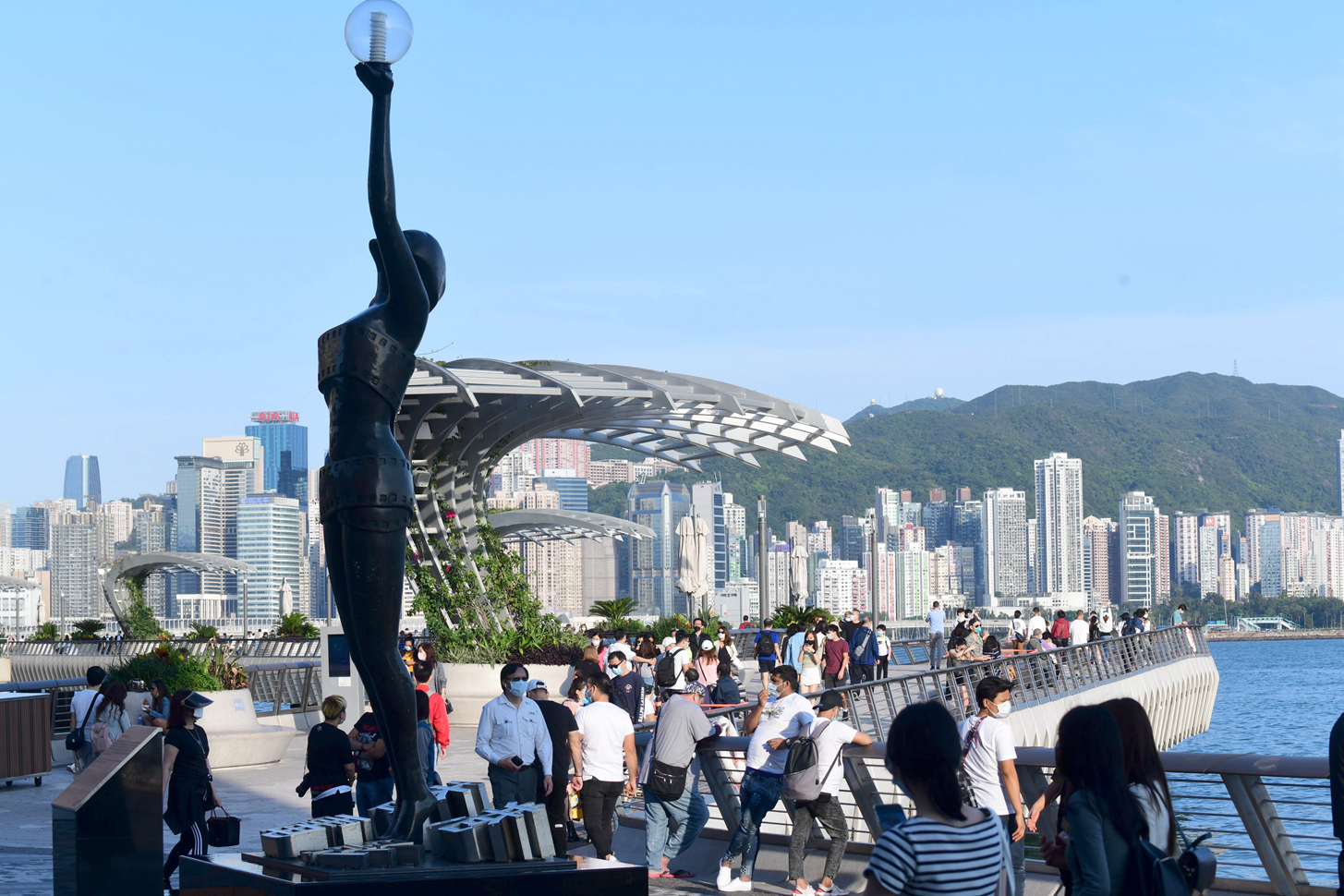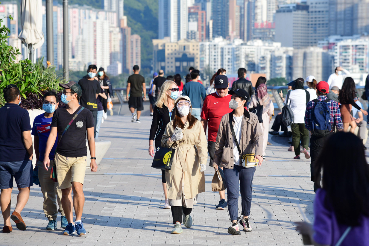 復活節假期第三天,尖沙咀星光大道人頭湧動,令人擔心給新冠病毒以可乘之機。記者崔俊良攝