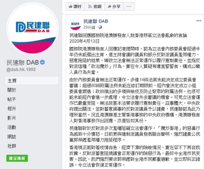 民建聯FB截圖