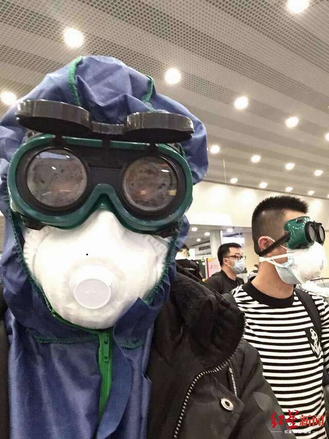 出发当天,黄顺水和同行的6位同伴都穿了隔离服,戴了口罩和护目镜。