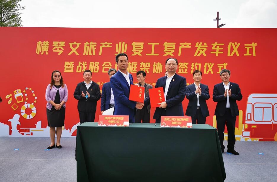 在儀式上,珠海大橫琴集團有限公司與珠海公共交通運輸集團有限公司簽署戰略合作框架協議,雙方約定全面提升區域合作水平,通過在打造通達交通運輸體系,實現琴澳無縫對接、加強橫琴項目品牌推廣、深度開展「公共資源+交通運輸」板塊合作三個方面加強合作,助力澳門建設世界旅遊休閑中心,橫琴國際休閑旅遊島建設,共塑灣區優質美好生活。