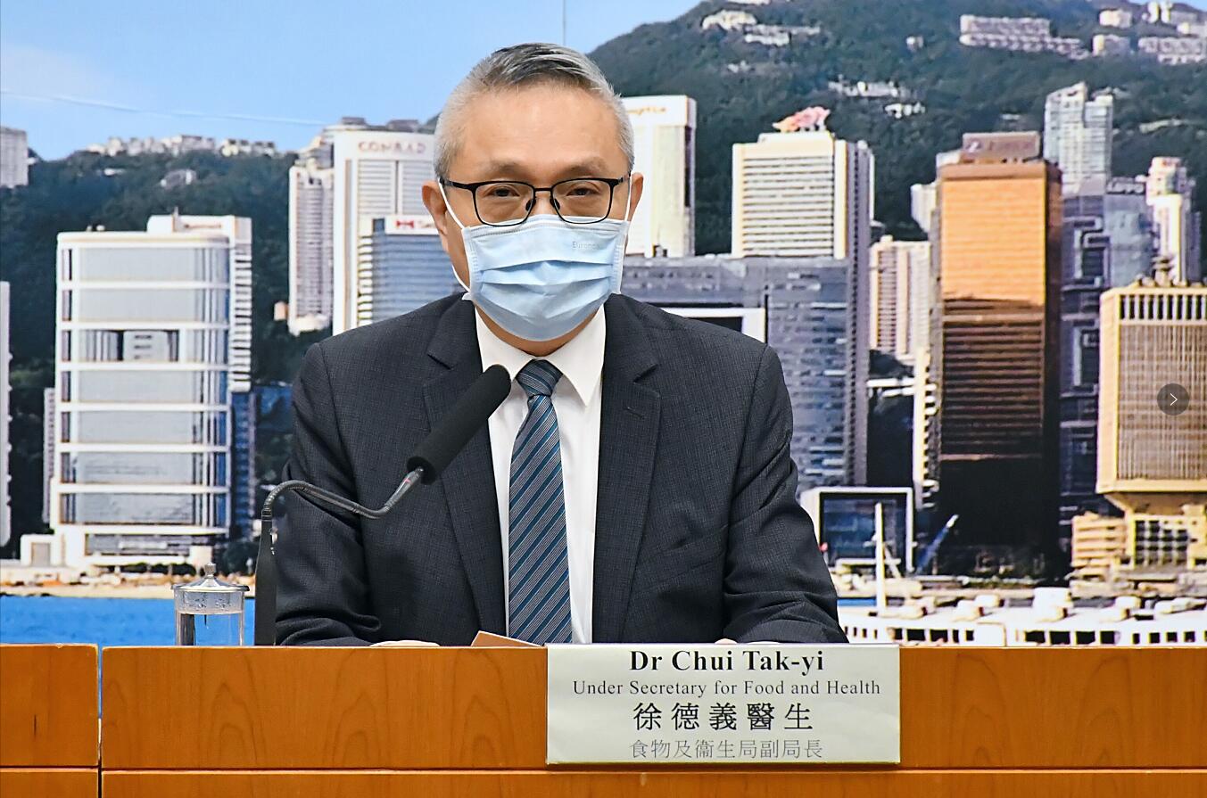 食物及衛生局副局長徐德義指,連續多日錄得單位數新增個案,最後一宗本地感染個案在本月9日出現,顯示疫情有初步回落跡象。他又指,私家診所至今收集7000個深喉唾液樣本,確診比率有1.3%,比例偏高,呼籲市民如有不適,可向私家醫生或醫院求診,留樣本作測試。(图片均由记者冯瀚文摄)