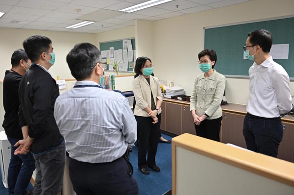 林鄭月娥感謝社署人員努力不懈、同心合力應對沉重的工作,務求盡快為經濟上出現問題的人提供現金援助,以應付生活基本需要。她相信署方會採取相應措施支援同事,包括調配人手和增加額外員工,及整合工作流程和簡化工序等,以應付可能進一步增加的工作量,亦讓部門能加快處理申請,使有需要幫助的市民盡快得到所需援助。