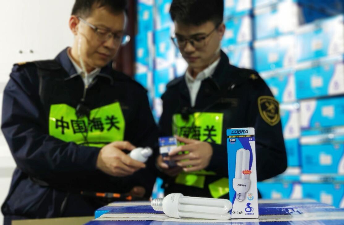 拱北海關查獲涉嫌侵權節能燈11萬隻 (郁濤 攝)
