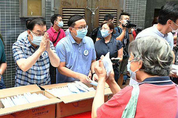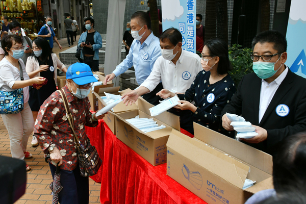 【香港商報網訊】記者李銘欣報道:今天多位大聯盟的共同發起人,分別在全港500個地點,向市民派發口罩。大聯盟將通過街上派發,社區和團體分發,網絡登記領取等方式,共派發成人口罩600萬個,兒童口罩400萬個。