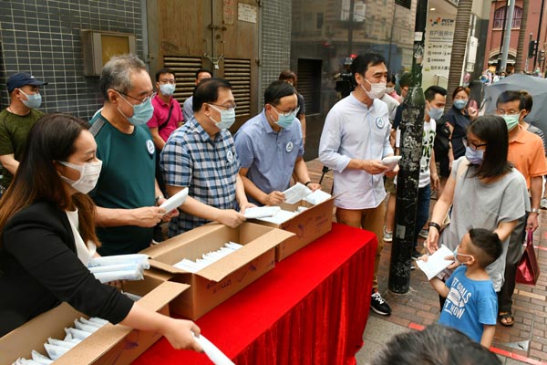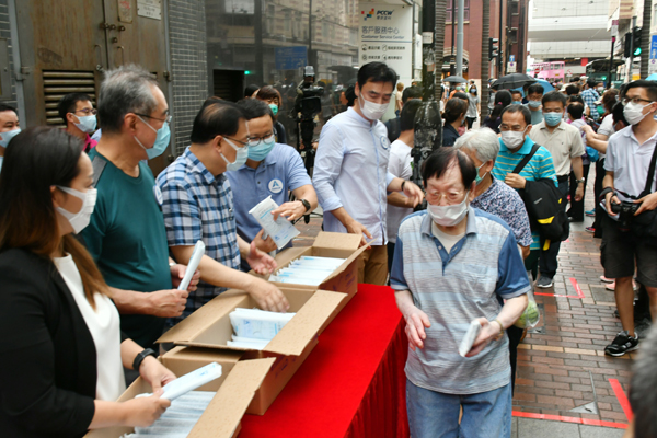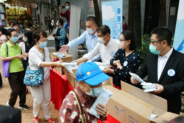 【香港商報網訊】記者李銘欣報道:由全國政協副主席董建華和梁振英擔任總召集人的「香港再出發大聯盟」,今早11時開始,在全港設置多個街站派發成人用口罩,表示是提醒大眾不可鬆懈,與市民攜手抗疫。