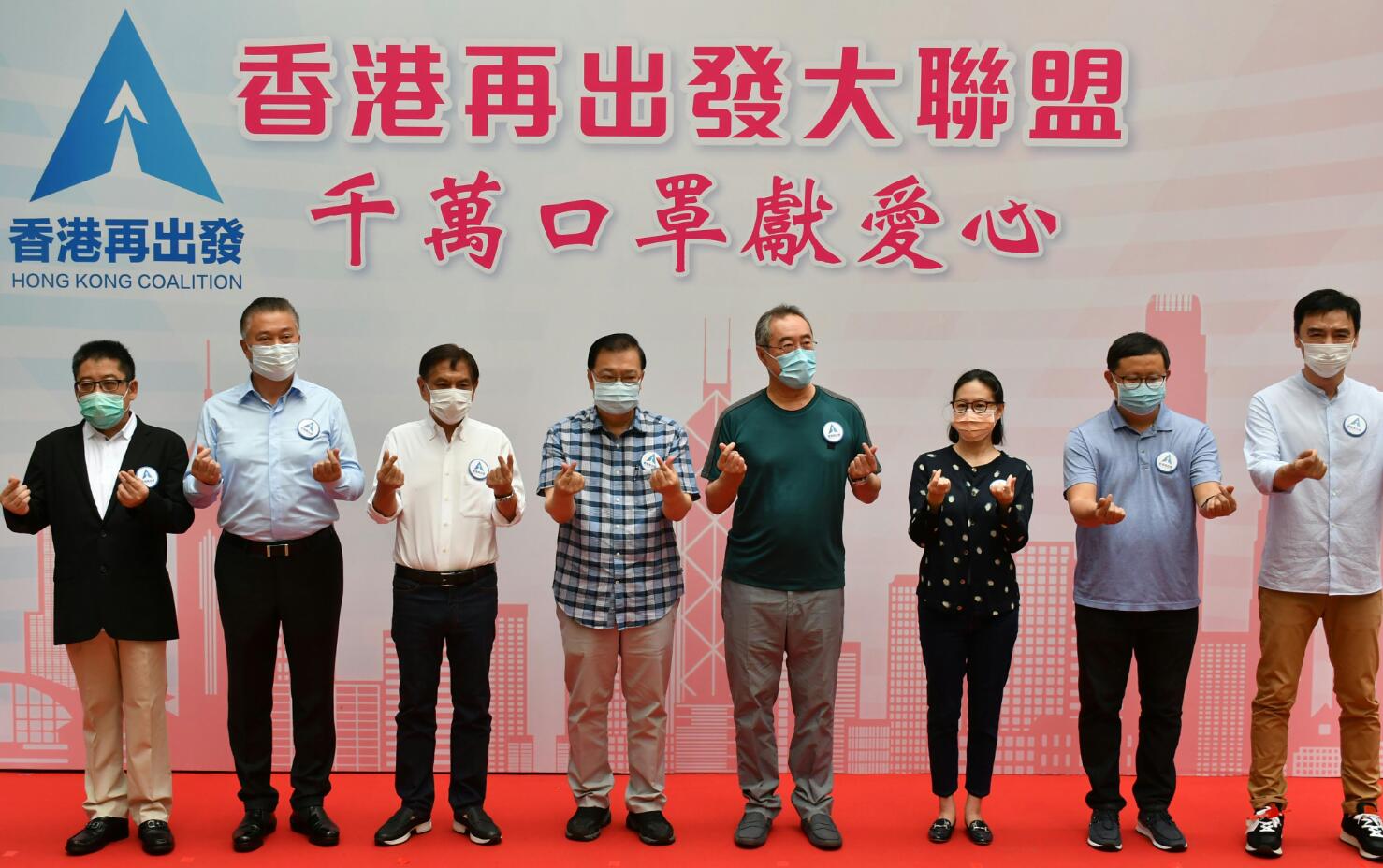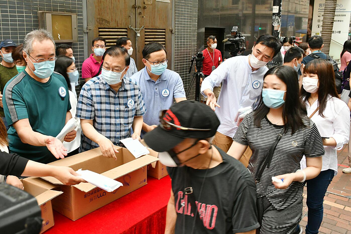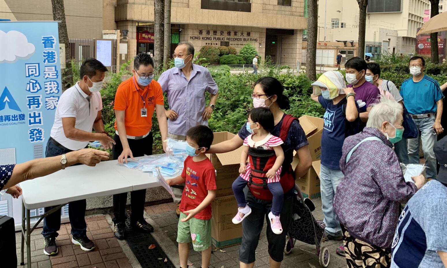 大聯盟共同發起人唐英年、何柱國、何超瓊、鍾鎮濤、黃英豪等擔任義工,向在場市民派發口罩;前律政司司長梁愛詩、基本法委員會副主任譚惠珠、工聯會理事長吳秋北等共同發起人則到其他派發點參與活動。